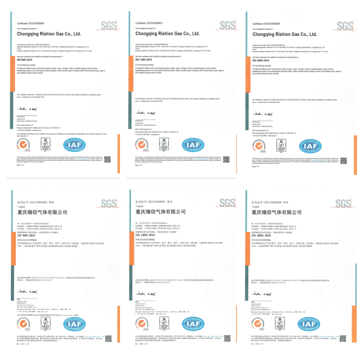 近日,國際權威第三方認證機構SGS派遣外審員對瑞信氣體進行了ISO三體系認證審核,經過SGS為期3天的嚴格審核,瑞信氣體通過了ISO三體系審核,獲得了SGS ISO 9001質量管理體系、ISO 14001環境管理體系及ISO 45001職業健康安全管理體系認證證書,標志著瑞信氣體在質量、環境、職業健康和安全等方面的管理能力達到新的高度。